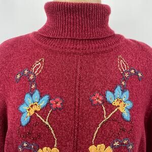 Keywords: vintage turtleneck embroidered embroidery floral flowers beaded beading vtg retro alfred dunner ramie cotton bohemian relaxed lagenlook fall fashion hippie 90s 1990's cottagecore prairie boho winter day dressing nineteen nineties '90s cabincore garden girl 90's romcomcore phoebe buffay layering pattern 1990s casual dainty 1980s eighties 80s y2k 00s 2000s maroon burgundy yellow blue