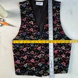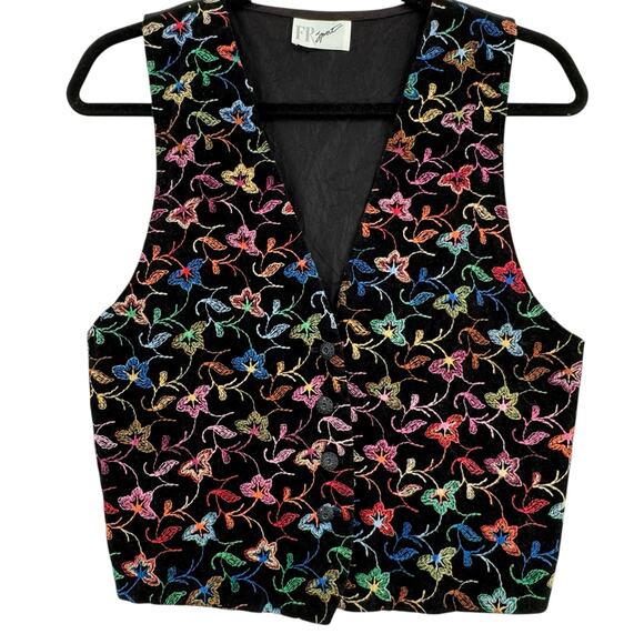Keywords: Vintage 90's Embroidered Floral Vest, XS, Black, Boho, Extra Small, Colorful, Retro, Buisness, Casual, Y2K, Art to Wear,