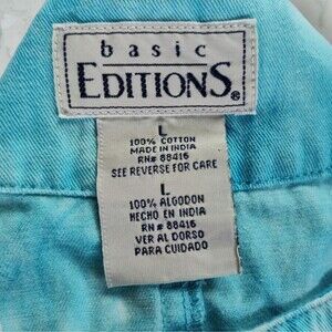 Vintage 90s Embroidered Midi Shift Dress Size L Blue Cotton Twill Tie Dye