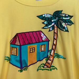 Vintage 90s Eminent Island Fever Beach Tropical Swimsuit Coverup Tee T-Shirt Top