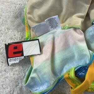Fun neon striped swimsuit in orange, green, and blue by Energy Zone. Still has tag attached, but missing hygiene sticker. Cups have no lining, and the straps are not adjustable.