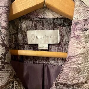 Vintage Erin London Y2K boxy purple, silver, and gray textured zippered blazer jacket.