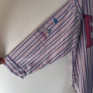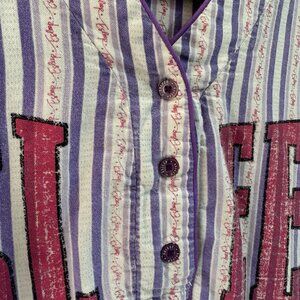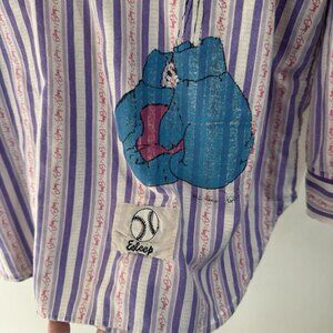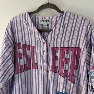 Vintage 90s Esleep Shirt L Boxing Baseball Sleep Pajamas Striped Purple Pink