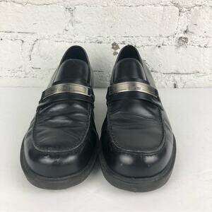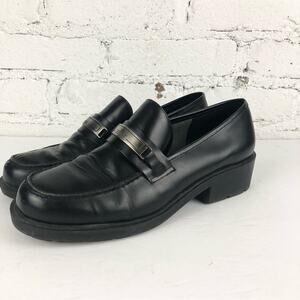 Vintage 90’s Esprit Chunky Heeled Loafer. Chunky silver esprit plaque. In a women’s size 9. In excellent vintage condition. Some scuffing and cracking due to age.