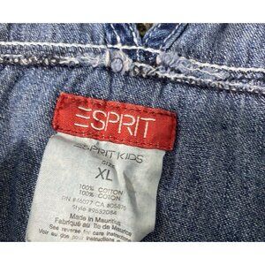 This vintage 90's Esprit Overall Short in XL size is a stylish choice for a girl's wardrobe. The sleeveless design, button closure, and denim fabric make it perfect for a school uniform or a retro-inspired outfit. With a solid blue color and a 6.5-inch inseam, this overall is versatile for all seasons. The overall also features straps and pockets, adding functionality to its stylish design. Made in Hong Kong, this piece embodies a hipster, punk, and 90s vibe, making it a trendy addition to any young girl's closet.