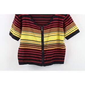 Vintage 90s Esprit Womens Large Faded Striped Knit Cropped Fit Full Zip T-Shirt