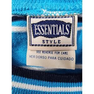 Vintage 90s Essentials Style Striped Pique Cotton Sleeveless Top Size M Blue White Sporty Athletic Athleisure Tennis Golf Preppy Grunge