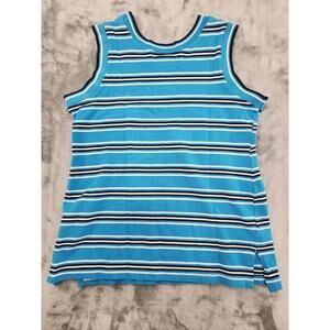 Vintage 90s Essentials Style Striped Pique Cotton Sleeveless Top Size M Blue