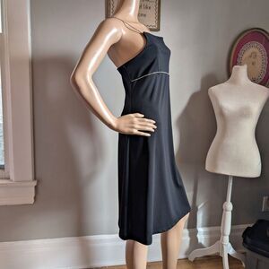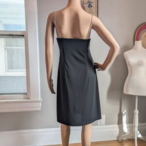 Vintage 1990s Express black mini dress. Babydoll/empire waist. Little Black Dress (LBD). Rhinestone straps, sleeveless. Iridescent unicorn skin rhinestones at bust. Dress is in good vintage condition with possible loose threads. Please see bust detail as it isn't entirely straight.