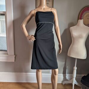 Vintage 1990s Express black mini dress. Babydoll/empire waist. Little Black Dress (LBD). Rhinestone straps, sleeveless. Iridescent unicorn skin rhinestones at bust. Dress is in good vintage condition with possible loose threads. Please see bust detail as it isn't entirely straight.