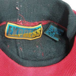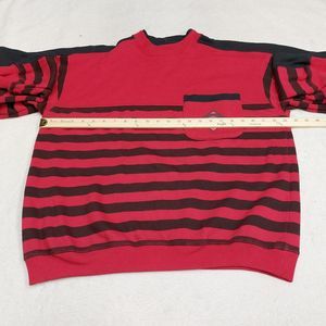 Vintage 90s Express Red & Black Striped Pocket Crewneck Sweatshirt Size Medium. Please see pictures for condition and measurements for proper sizing and fit.