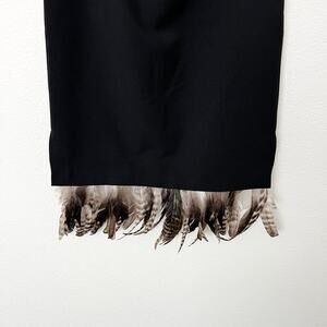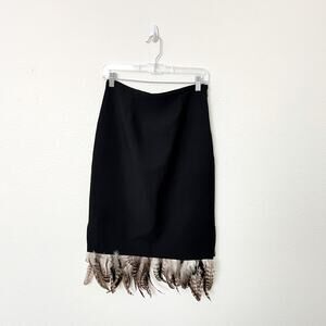 Vintage 90's Express Size Small S Black Pencil Skirt Feathers Hem NWT
