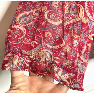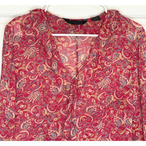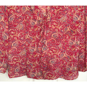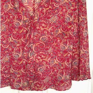 Vintage 90s Express Women's 100% Silk Ruffle Crop Blouse Sz 11/12 Sheer Paisley