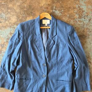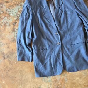 Vintage 90s Express Women's Blazer Size M Blue Linen Blend Oversized Menswear