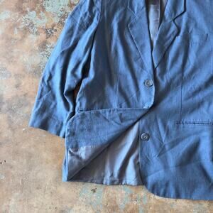 Vintage 1990s Express Compagnie Interntionale blue oversized Rayon and linen blend menswear style blazer, size medium. Deep front pockets. In gently preowned condition, no flaws noted.