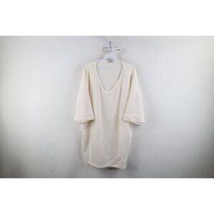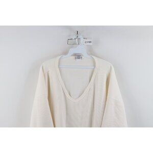 Vintage 90s Express Womens Large Blank Baggy Thermal Waffle Knit T-Shirt Cream