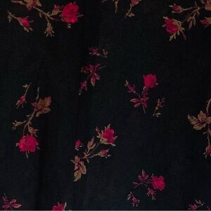 Vintage fitted button front 100% silk top from Express.Semi sheer black silk with red/pink rose print.