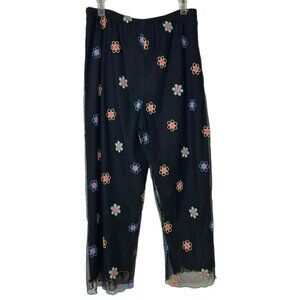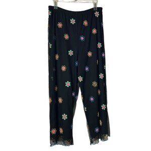 Vintage 90s F.L. Malik Floral Embroidered Mesh Black Pants Women's Size Medium