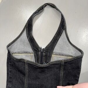 Vintage 90s FUBU The Collection Black Denim Halter Dress Mini Y2K Pockets