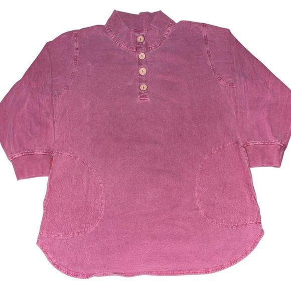 Vintage 90s Faded Burgundy 1/4 Button Pocket Shirt Large