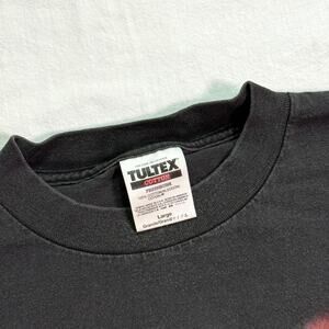Drag racing tee in good condition. Heavyweight, 100% cotton, with a nice fade. Large front print is crisp. Some paint on the back side hem (pictured). Old Tultex tag.
