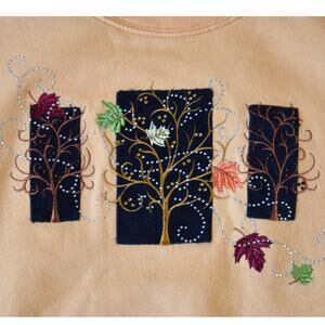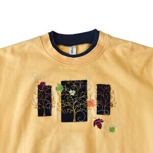 Vintage 90s Fall Leaves Embroidered Crewneck Sweatshirt, Quirky Grandmacore