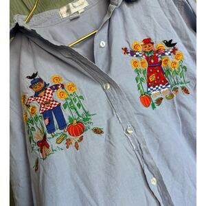 Vintage 90s Fall/Pumpkin Emroidered Chambray Button Up 0X