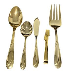 Vintage 1990's Farberware - Gold Electroplated Flatware Set in the Nicole pattern - service for 10 people plus a Hostess set with serving pieces - 55 pieces total. This pattern is a lovely classic design - the gold plating makes it so special!