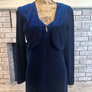Vintage 90s Fashion Bug Velour Maxi Evening Dress Bolero Set Whimsy Blue Size 8
