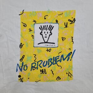 Rare 90s Fido Dido tee with pastel squiggle art and No Problem print in XS white cotton Shop this iconic vibe.