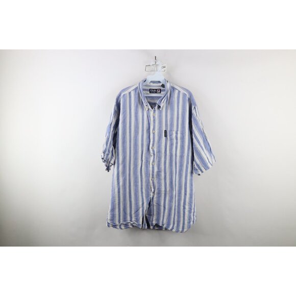 Vintage 90s Fila Sport Mens XL Linen Blend Striped Short Sleeve Button Shirt