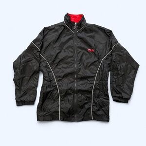 vintage Fila windbreaker, 90s Fila jacket, red and black Fila windbreaker, retro Fila track jacket, 1990s Fila windbreaker, colorblock Fila jacket, vintage sportswear jacket, Fila nylon jacket, 90s streetwear jacket, old school Fila coat, Fila zip up windbreaker, Y2K Fila jacket
