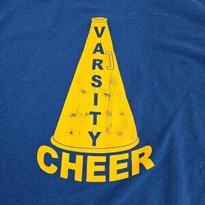 Vintage 90s Findlay Ohio Trojans Cheer Athletic Tshirt Blue Yellow Retro