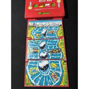 The vintage 90s Flipsiders River Run is a rare travel game released in 1992 by Anjar Co. This red cassette game is a mini version, making it a unique collectible item for board game enthusiasts. The game offers a nostalgic gaming experience from the 90s, featuring interactive and engaging gameplay suitable for on-the-go entertainment.
