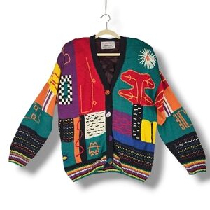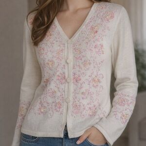 Vintage 90s Floral Christmas Knit Cardigan Sweater