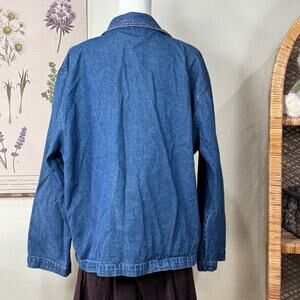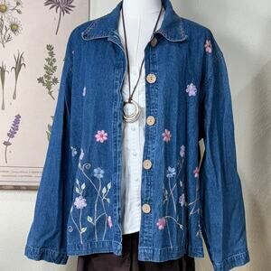 Vintage 90s Floral Embroidered Denim Shirt Cottage Coastal Grandma Prairie XL