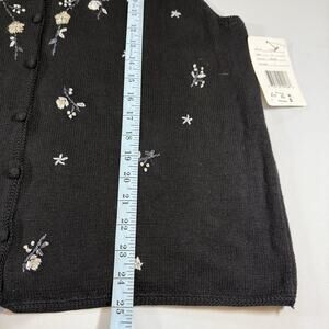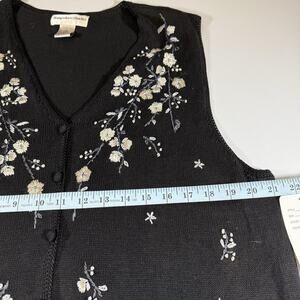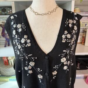Vintage 90s Floral Embroidered Granny Boho Coastal Cottage Vest - Black Wms L