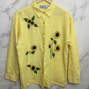 Vintage 90s Floral Embroidered Summer Sunflower Button Down Shirt Blouse - C34