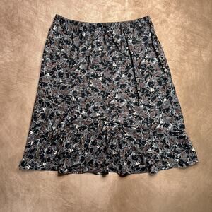 Vintage 90s Floral Fairy Grunge Midi Skirt Elastic Waist Gray Black Purple Goth