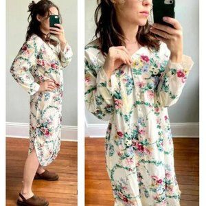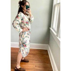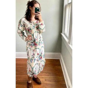 Vintage 90s Floral Henley Bow Nightgown Grunge Cottagecore Midi Dress