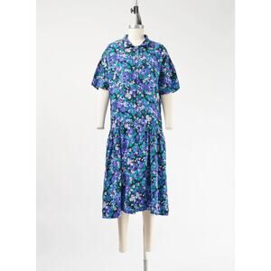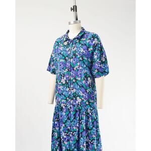 Vintage 90s Floral Loose and Relaxed Fit Dropped Waist Midi Dress M L