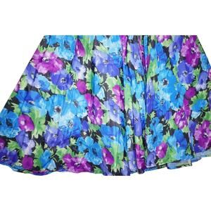 Vintage 90s Floral Midi Skirt – Size M – Made in USA – Elastic Waist – Bold Blue