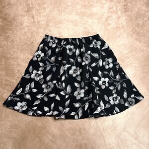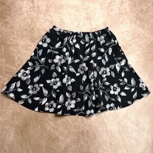 Vintage 90s Floral Mini Skirt Black White Elastic Waist Whimsigoth Goth Rococo