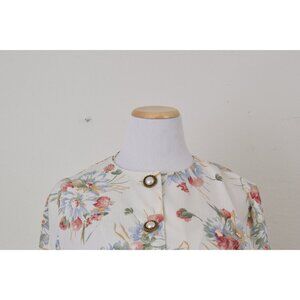 Vintage 90s Floral Poly/Rayon Boxy Fit Long Sleeves Crop Shirt size Large