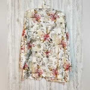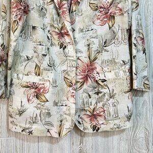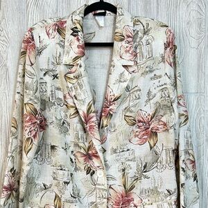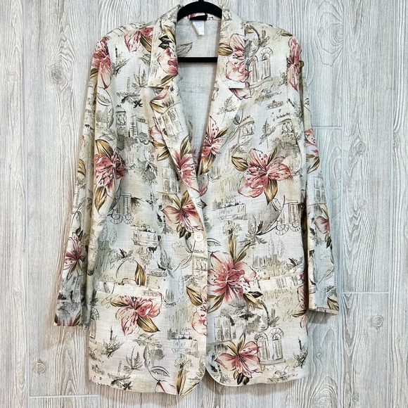 Vintage 90’s Floral Print Neutral Flax Blend Women's Blazer Size Large