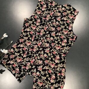 Vintage 90’s Floral Rayon Sleeveless Button Front Vest Top & Skirt Set Granite