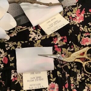 Top- Tagged size 13. Sleeveless with button front closure, long, vest-like silhouette. Darts at front and back. Side seams have previously been taken in, I removed the alterations leaving some remaining thread holes and minor runs.