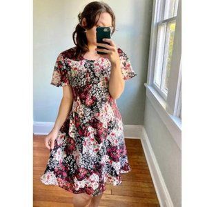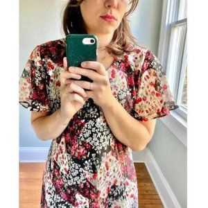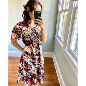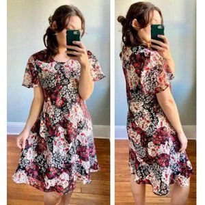 Vintage 90s Floral Rose Ruffle Flutter Cottagecore Chiffon Dress