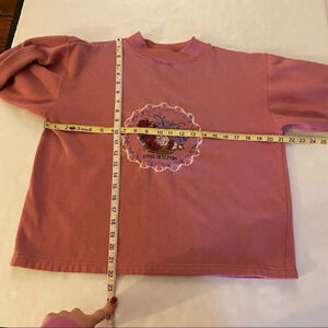 Vintage 90s Flower Embroidered Mockneck Pullover Floral Pink Sweatshirt Small