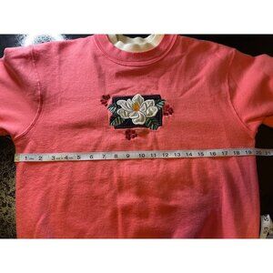 Vintage 90s Flower Embroidered Top Stitch Pink Pullover Sweatshirt Top